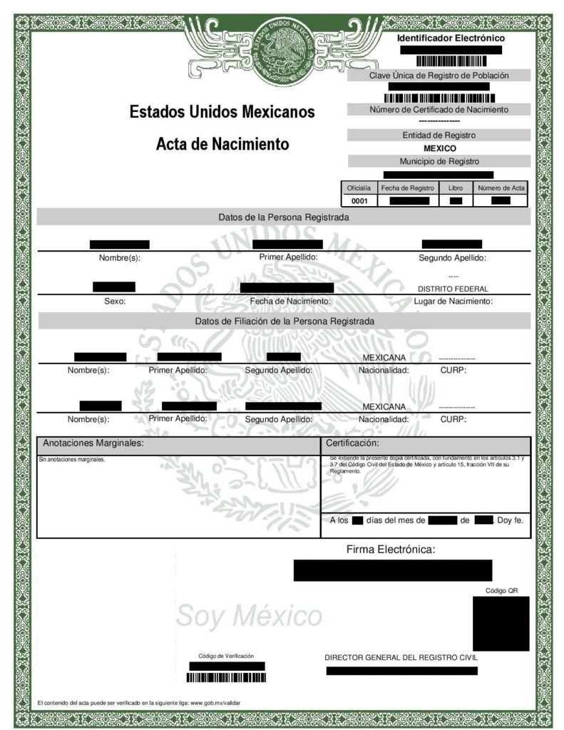 – Obtenga una copia de su certificado de nacimiento mexicano de inmediato..